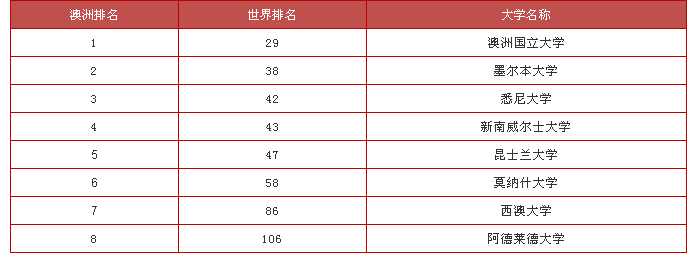 2、中国在世界前100有6所,澳洲世界前100有7所。所以我们可以看到如果你进入澳洲八大就相当于进入了我们的北大、清华。