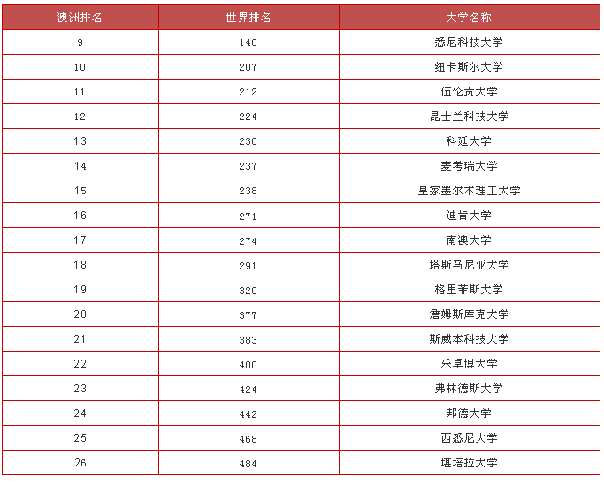 悉尼大学 提升至 第42名 , 新南威尔士大学 ,提升至 第43名 , 超越英国伦敦政经(44)