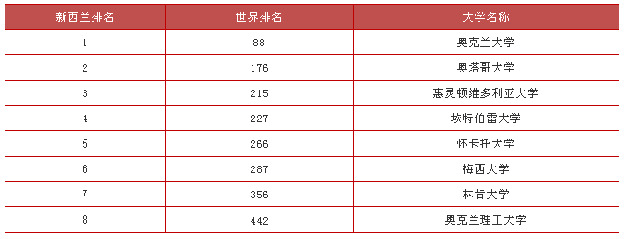 新西兰共有8所大学,而这八所大学全部位列世界500强,其教育质量可见一斑。其中 奥克兰大学 稳居新西兰的NO.1,位列世界88位。超越中国科学技术大学和英国的利兹大学及诺丁汉大学。
