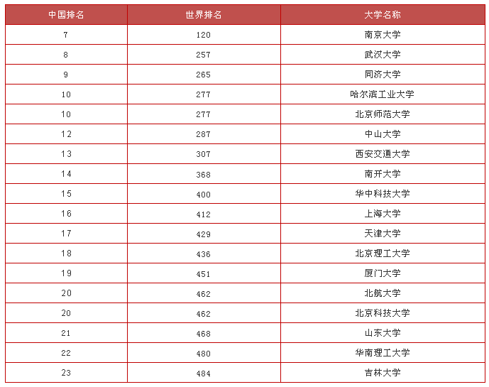 此次排名中,中国大学进步有目共睹,其中有23所中国大学位列世界前500强。 南京大学 仅次于世界100强,位列 第120 ,比肩澳洲的阿德莱德大学。 吉林大学 ,位列484,比肩澳洲的堪培拉大学。