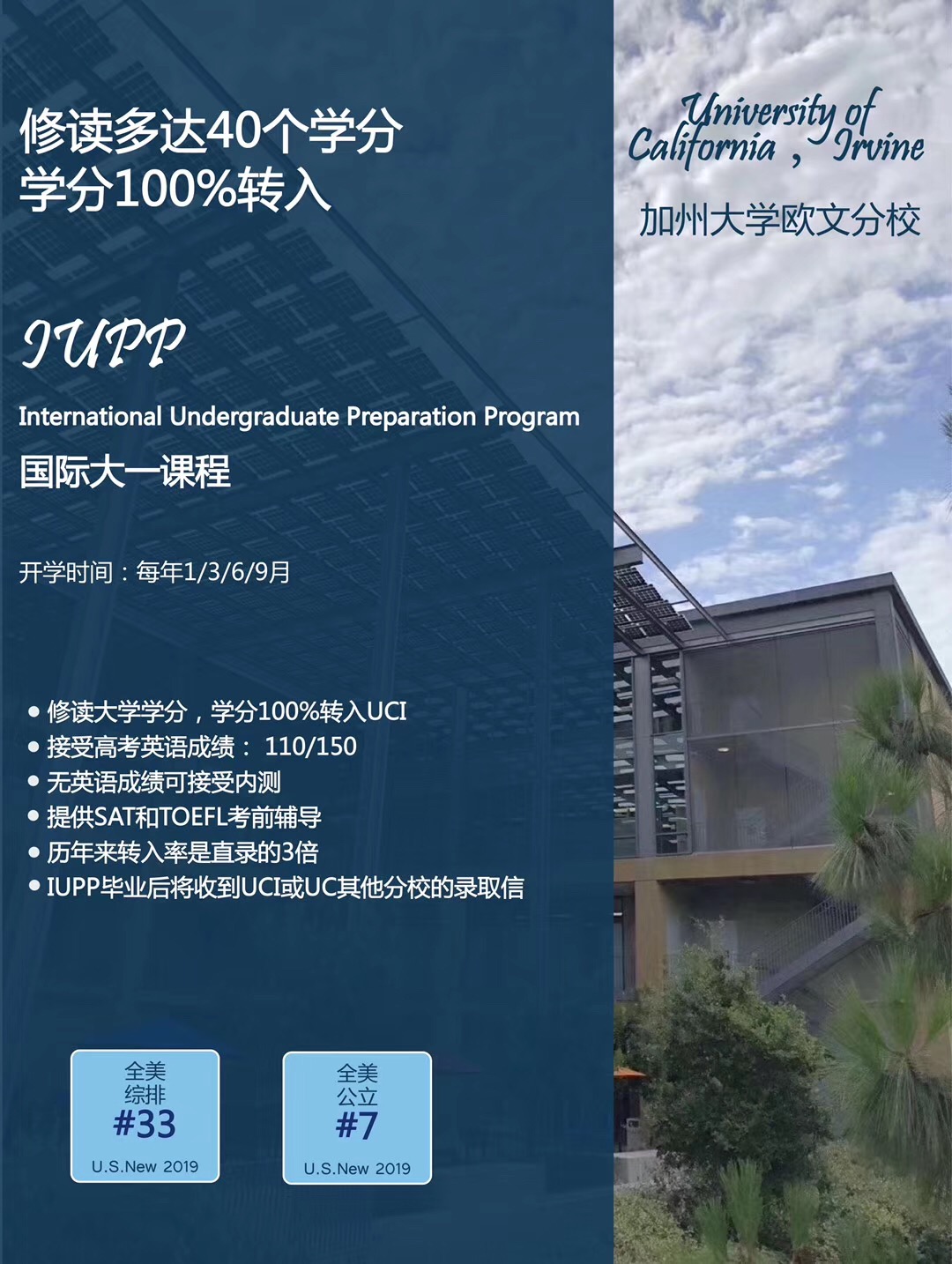 加州大学欧文分校综合排名#33* 加州欧文国际大一课程 IUPP :