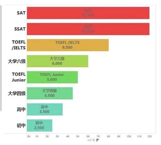 各级考试对于英语词汇量的要求