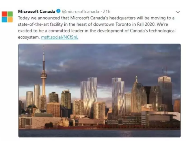 据悉,在多伦多设立新总部只是微软加拿大分公司未来四年战略的一部分,其他包括:搬迁和扩建在蒙特利尔的研发实验室,搬迁温哥华的销售办公室,翻新在渥太华、卡尔加里和蒙特利尔的销售办公室。业内评论指,微软在多伦多设立新总部意义重大,可能会促使另一大科技巨头亚马逊最终下定决心将北美第二总部也选址在这里。