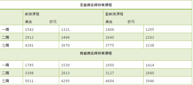 四、注意事项 1、 费用不包括缴费时在银行所产生的手续费。 2、 每个报名者都将会和柴院大师班签署合同。如果报名者希望增加或者减少其中对应的课程内容或次数,其合同中的金额也会根据报名者的选择减少或增加相关费用。 3、 如果报名者在申请表中提到需要特定语言的翻译,柴院大师班将尽量满足。但如果出现特殊情况,不能满足报名者的对翻译的要求,柴院大师班有权利将其改为英语翻译。 在取得正式邀请函和签证支持时,需要在2018年7月15日之前提前支付125美元或者100欧元押金(算进课程费用)。 4、 相关领事服务产生的费用不算进学费中去 5、 在学生与学校签订合同后,需要缴纳全款。如有自己原因不能参加大师班,其相关费用将不会退还。