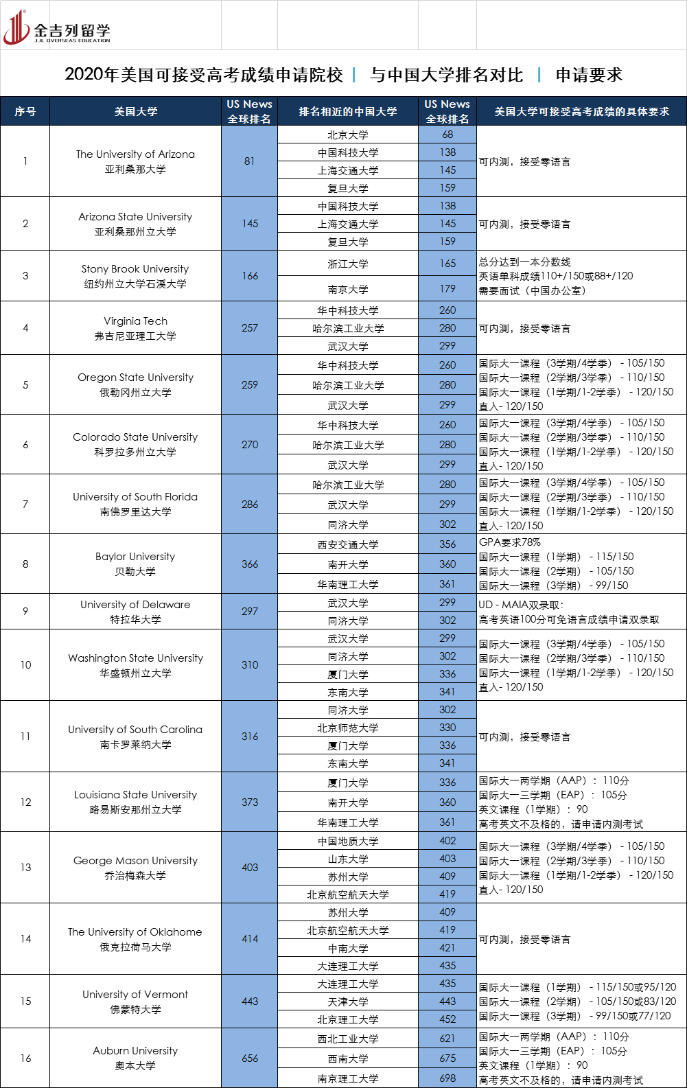 从下面这张图中,我们可以看到,有多所世界名校接受高考成绩,或者通过内测(无托福或雅思成绩)均可进入这些学校就读!