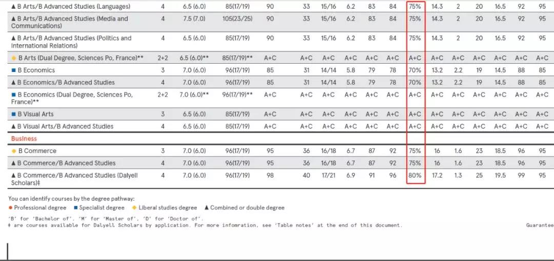 莫纳什大学的要求较前几所稍低,大部分专业录取线为当地高考满分的60%-65%。