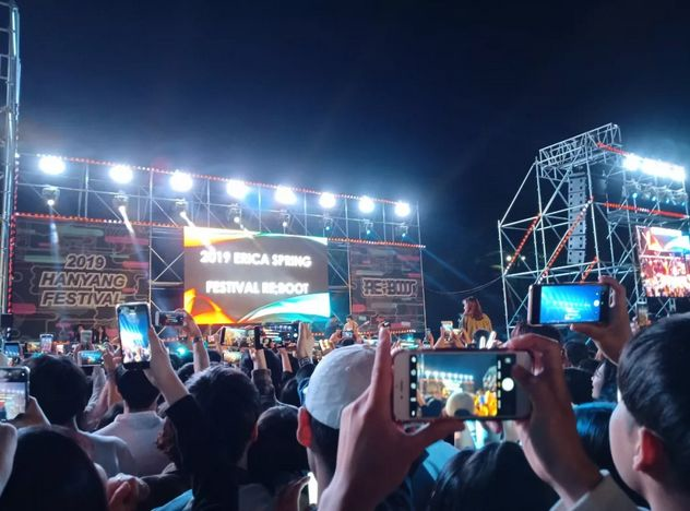 校庆最后结束之余,学校还为大家准备了烟花秀,当所有人跟着歌手HAHA一起倒计时数到1的时候,天空中突然出现了美丽的烟花,散开的烟花好像是天上的星星,一眨一眨,是真的好美。就这样汉阳大ERICA的校庆以美丽的烟花就落下了帷幕~~~~