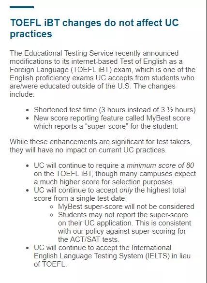 ◆加州大学继续接受IELTS(雅思)考试成绩代替托福成绩。