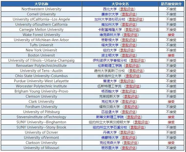 目前明确表明对于拼分政策态度的学校有这些: