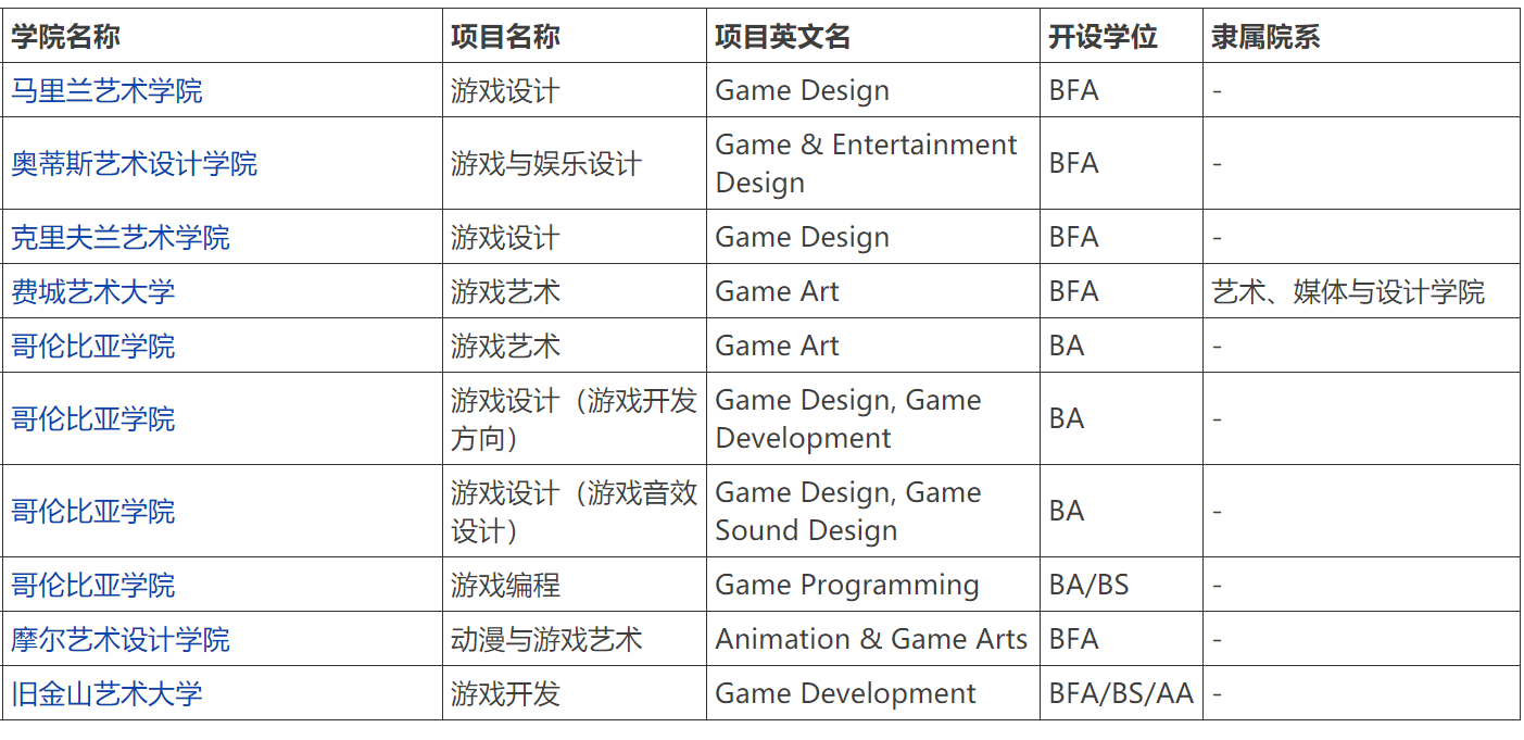 美国本科开设游戏设计的学校列表