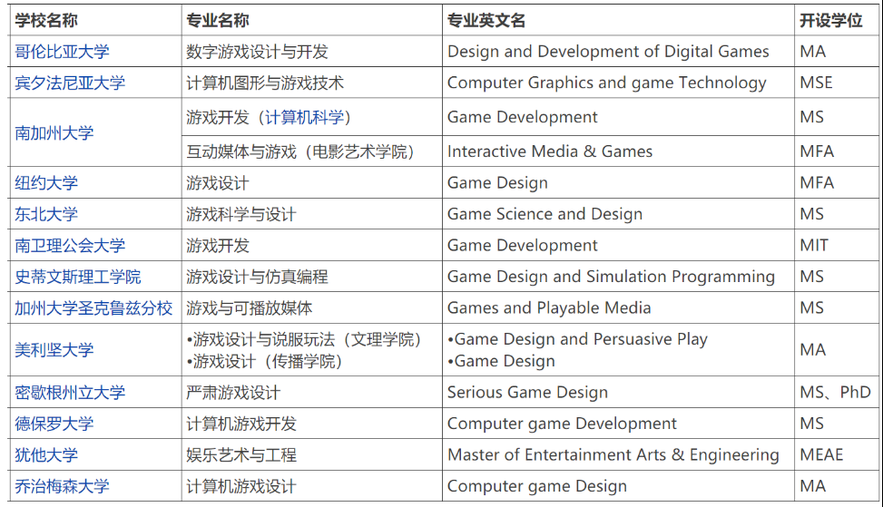 美国研究生开设游戏设计的学校列表
