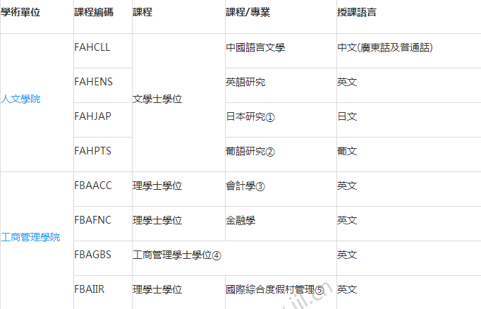 2018/2019 學 年 招 生 之 學 士 學 位 課 程 如 下:(2019/2020学年资料将稍后公布)