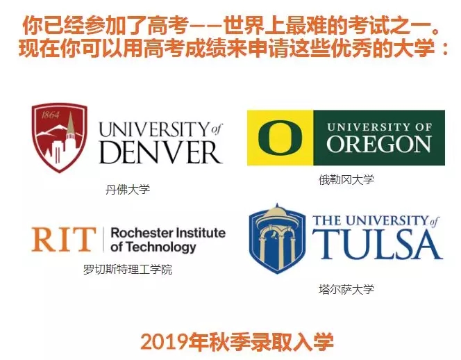 随着留学风潮兴起,越来越多的美国高校开始认可中国高考成绩, 近日,美国大学又传来好消息。 2 019年,又有四所美国大学宣布将接受高考分数。这四所学校是:俄勒冈大学、塔尔萨大学和罗切斯特理工学院、丹佛大学。