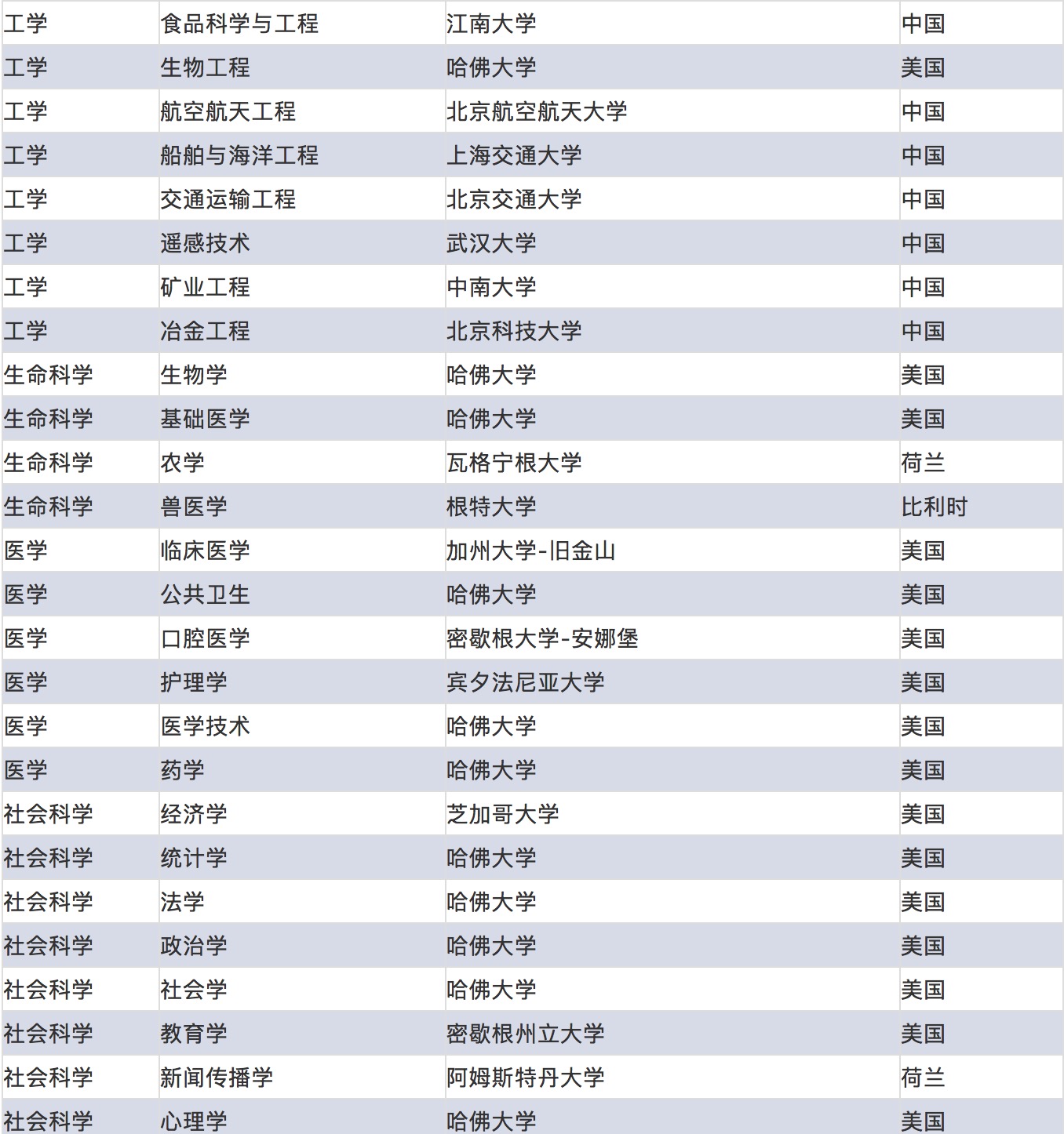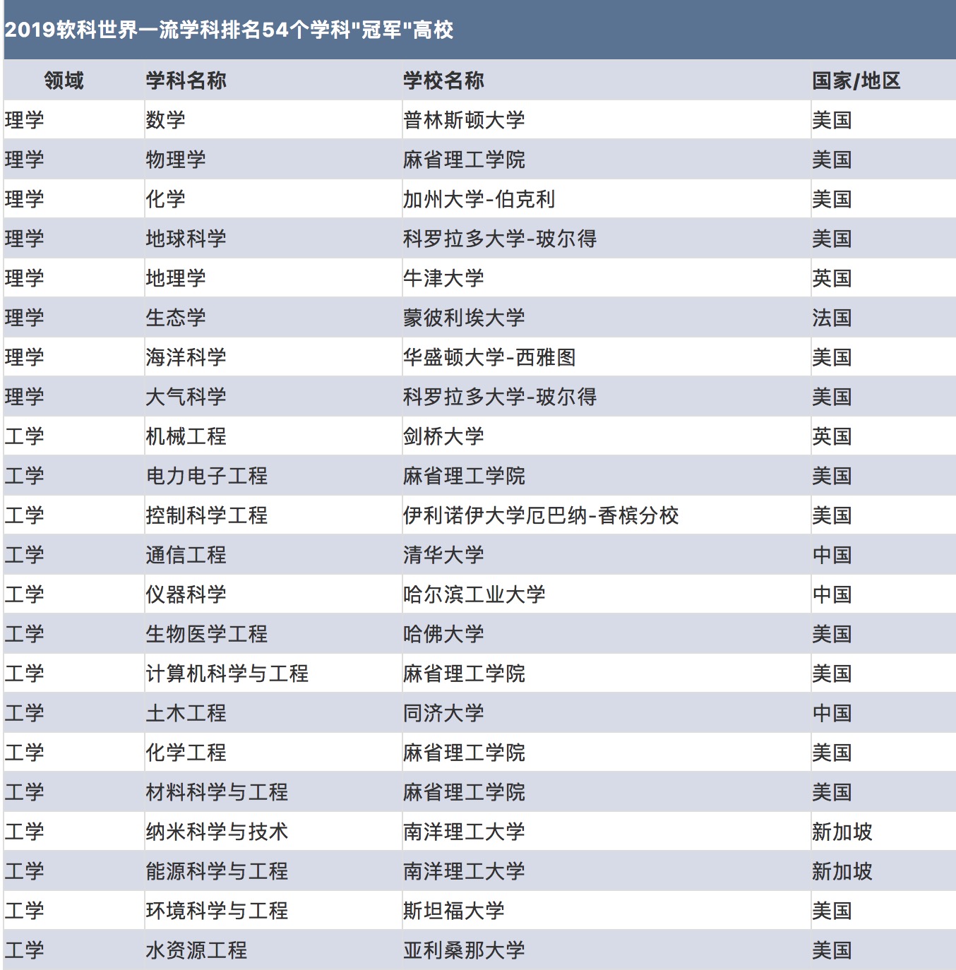 2019软科世界一流学科排名 54个学科“冠军”高校