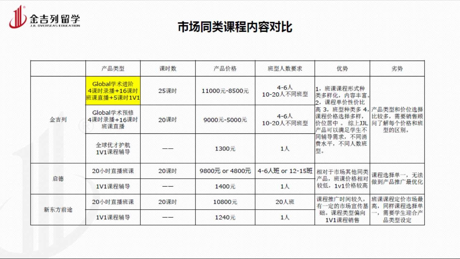 当然,市场上其他机构也有相关的课程,经过对比,大家就可以发现金吉列的优势所在: