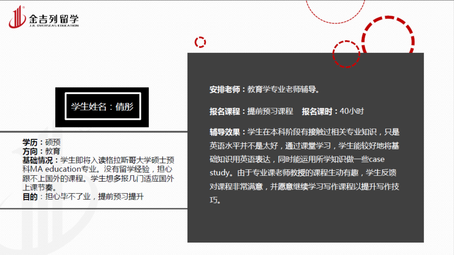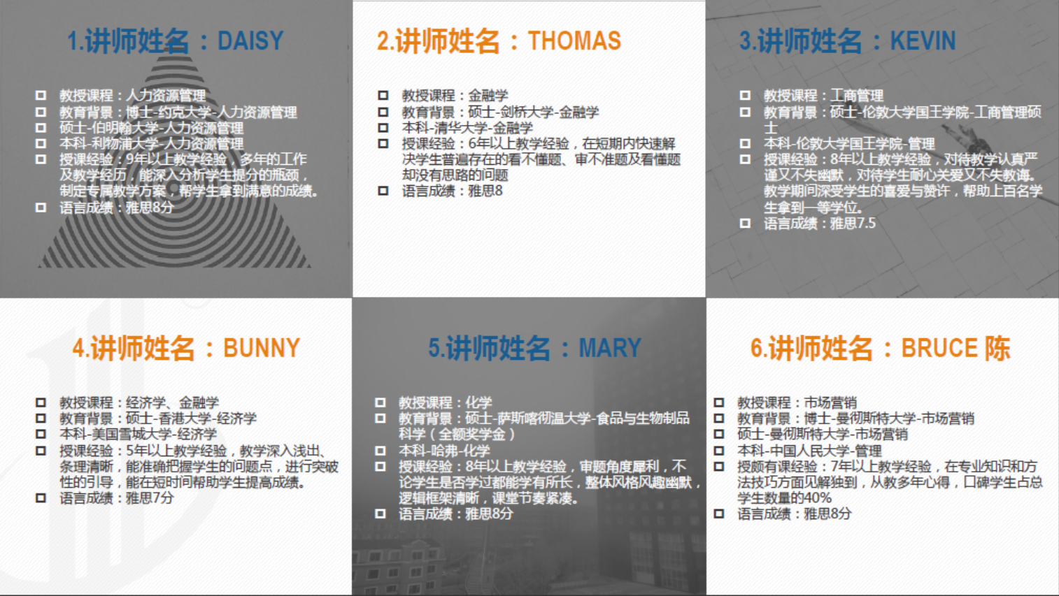 从量上,“全球优才海外学术辅导项目” 难逢敌手,从质上,金吉列也是首屈一指的,介绍一下为大家授课的老师,都是智慧与颜值并存!