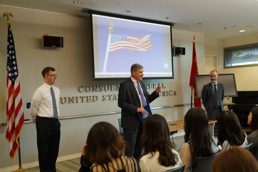 7月2日,美国驻广州领事馆商务处召开了签证官对现行签证政策的解读会,出席活动的有美国驻广州领事馆总领事 Jim Levy 先生与两位签证官,金吉列留学作为国内知名的留学中介之一也受邀参加了此次签证政策解读会。