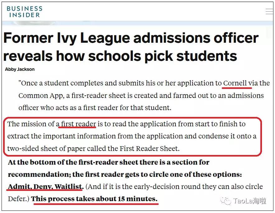 层层审核,听着就不禁为申请者们捏把汗?按照这样的方式大部分名校申请者,在第一位审核人手上就被“灭”掉了。