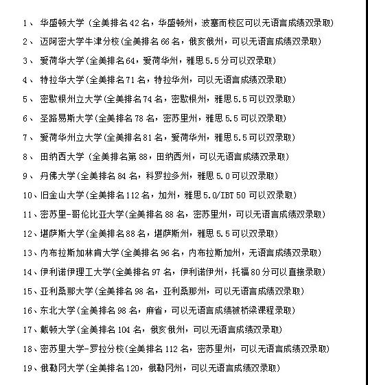 虽然美国TOP30的学校都没有双录取,但是双录取学校中也不乏有很多有名的好学校,下图中的大学可以作为参考。