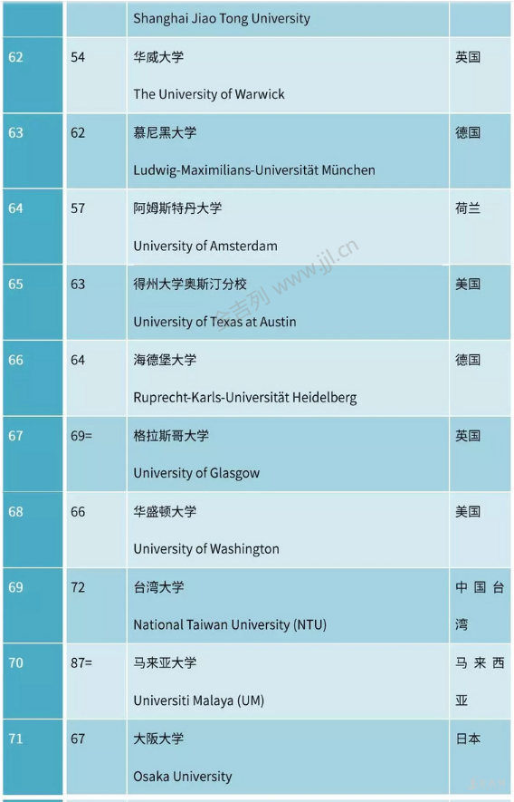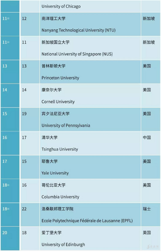 同期亚洲不能错过的是亚洲最佳的新加坡,今年南洋理工学院和国立新加坡大学两所学校排名并列11,果然相亲相爱!