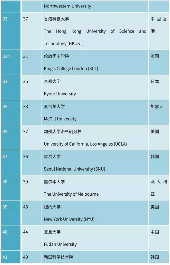 值得一提的是,中国大陆和中国香港的大学上升势头非常大!