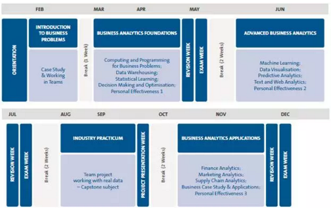 墨尔本商学院开设了为期一年的全日制商业分析硕士项目(MASTER OF BUSINESS ANALYTICS),传授顶尖数据分析师必备的知识技能——就读该项目的你,不仅将成为数学和信息系统专家,还将是能够通过数据分析作出精准商业决策的商界精英。