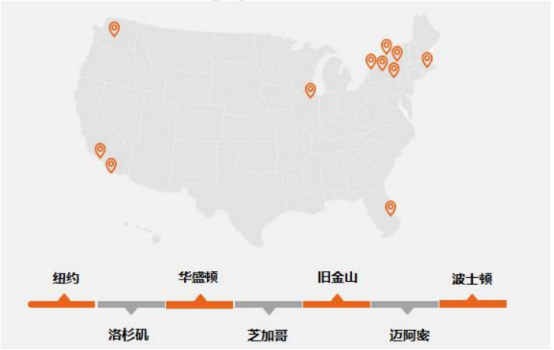 为给学生创造更好的实习体验,该项目实习地点均选在美国一线大城市,如:纽约,洛杉矶,华盛顿,芝加哥,旧金山,迈阿密,波士顿等知名城市。