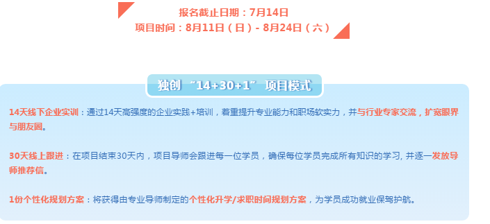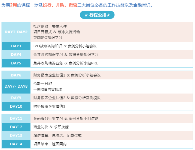 现在!right now!加入伦敦金融街投资并购金融实训项目,真实体验在底蕴深厚的的金融城办公;资深金融大咖手把手教学,2周快速掌握必备工作技能和金融知识;实操Morgan Stanley真实项目。实现学术和职业技能的同步提升,为求职和留学深造加分。