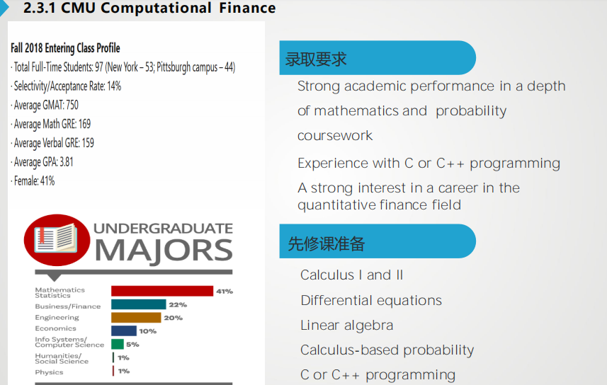 梁老师以金融工程最强的卡耐基梅隆大学为例,大家可以看看它的招生要求情况: