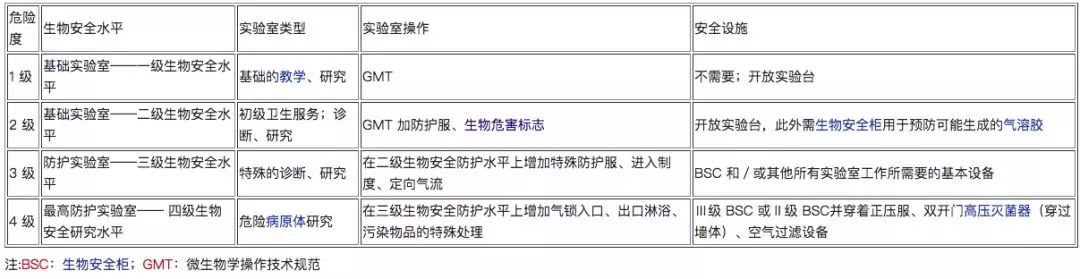 实验室不同的生物安全水平,四级是最高的丨Wikipeia
