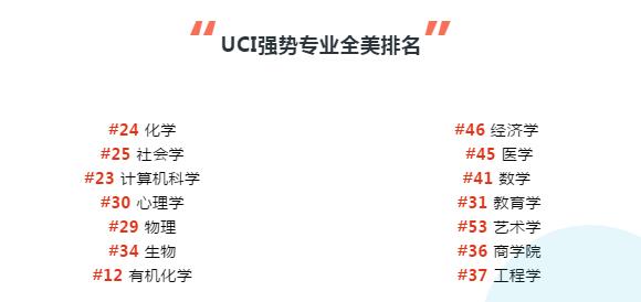 加州大学欧文分校 University of California,Irvine(简称UCI),是一所成立于1965年的美国四年制公立大学,在校学生约3万人,是美国加州最具有活力的研究型大学。UCI拥有强大的科研实力,历史上曾在物理和化学领域获得3个诺贝尔奖。