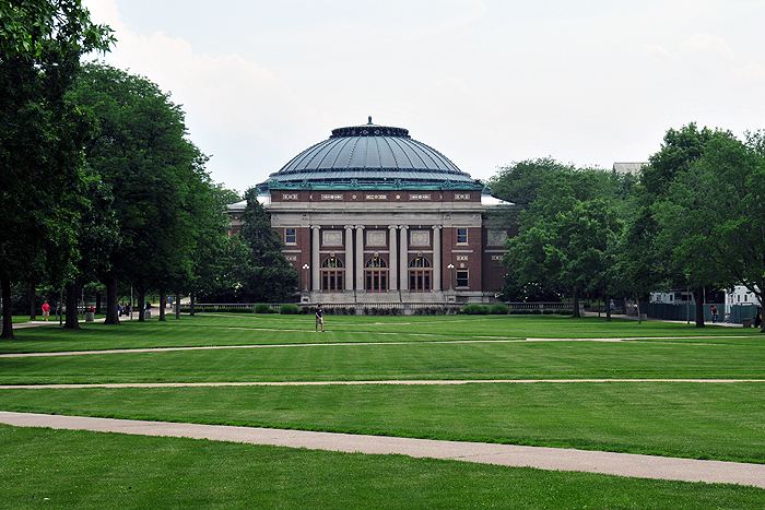 作为最古老的政府赠地的学校,伊利诺伊大学的校园建设在香槟市和乌尔班那之间的农场上。该州的伊利诺伊湖是闻名世界的美国五大湖之一,自然景象令人叹为观 止。花园式的校园是沿着一公里长的中心线设计的,周边都是用砖砌的乔治亚结构的白色圆柱,以及树木和人行道。喜欢锻炼身体的学生很喜欢这个校园,因为校园 很平坦,斜坡很合理,还有宽阔的门廊。一个25万平方英尺的计算机科学中心和体育教育中心在近期已经开放了,由于具有孵化器设备,企业工厂和技术商业化实 验室,教师和学生可以从研究的商业化中得益。