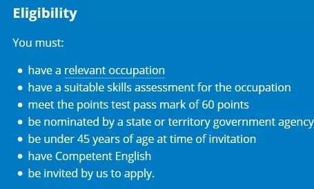 EOI达到65分(加上州担保的5分以后达到65即可)
