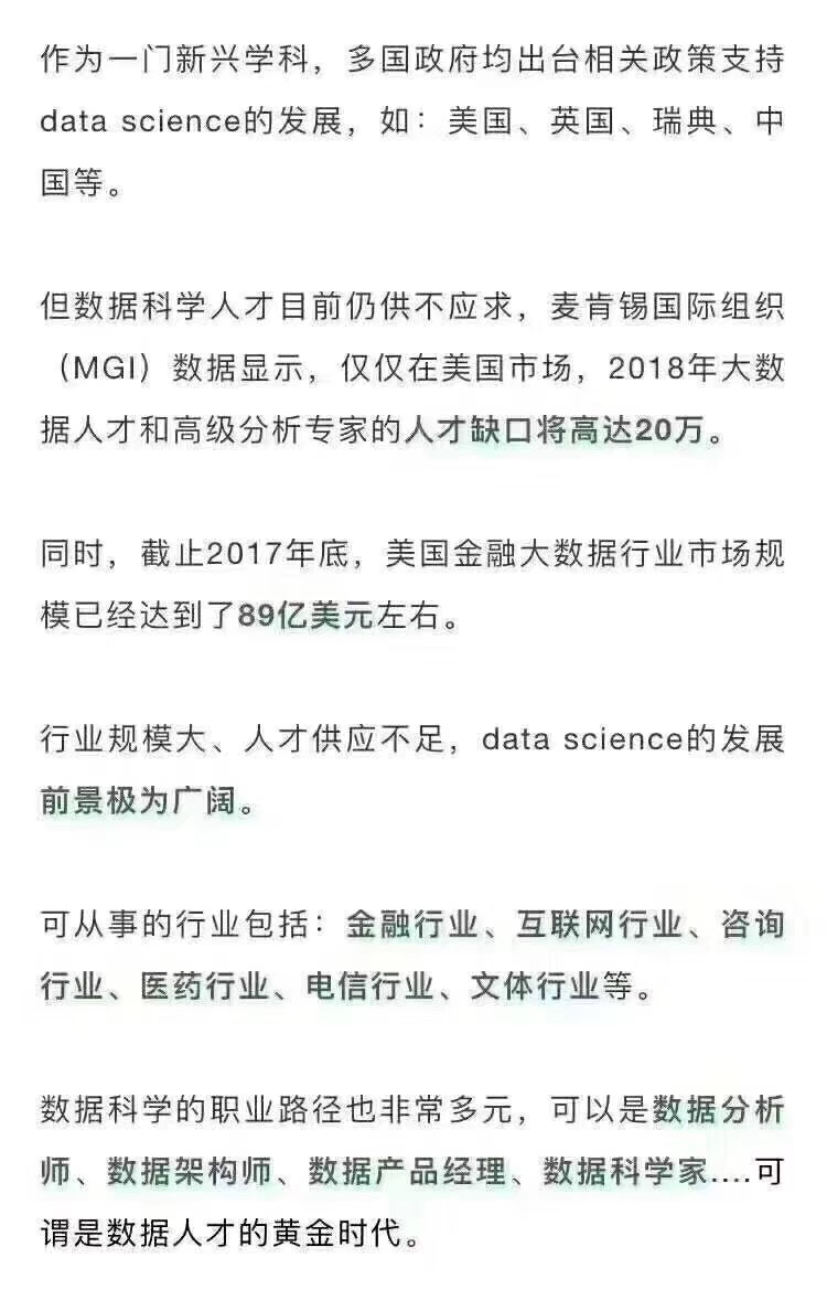 本项目成立于 2012 年,融合了数学、统计、高端 IT 和数据分析的教学和研究内容,除了正常的授课外,学生还需要完成两个行业实习和一个课程设计。