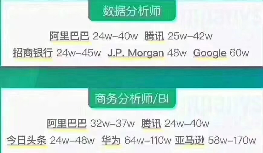 其中对大数据处理需求最旺盛的行业包括:制药业、计算机软件、互联网、科研、 IT 技术服务、生物技术。事实上,大数据工作者可以施展拳脚的领域非常广泛,从国防部、互联网创业公司到金融机构,到处需要大数据项目来做创新驱动。数据分析或数据处理的岗位报酬也非常丰厚,在硅谷,入门级的数据科学家的收入已经是 6 位数了 ( 美元 ) 。