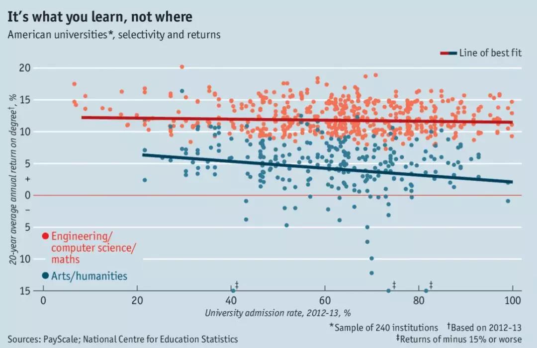 所以,在投资回报率上,你学什么,远比你在哪所学校学更重要