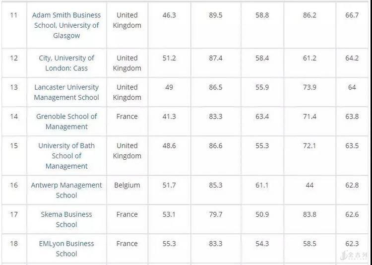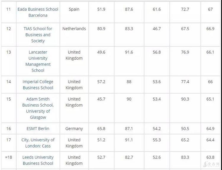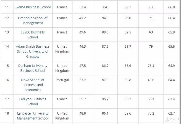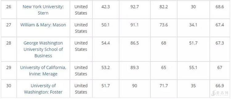 其中共有4个商科专业的榜单,包括一年制MBA榜单(one-year MBA egrees)、两年制MBA榜单(two-year MBA egrees)、管理学硕士(master’s in management)、金融学硕士(master’s in finance)。