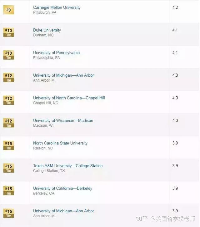 5、美国大学统计学专业排名