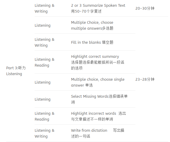 (3)PTE 考试时间为3个小时, 涵盖听说读写;