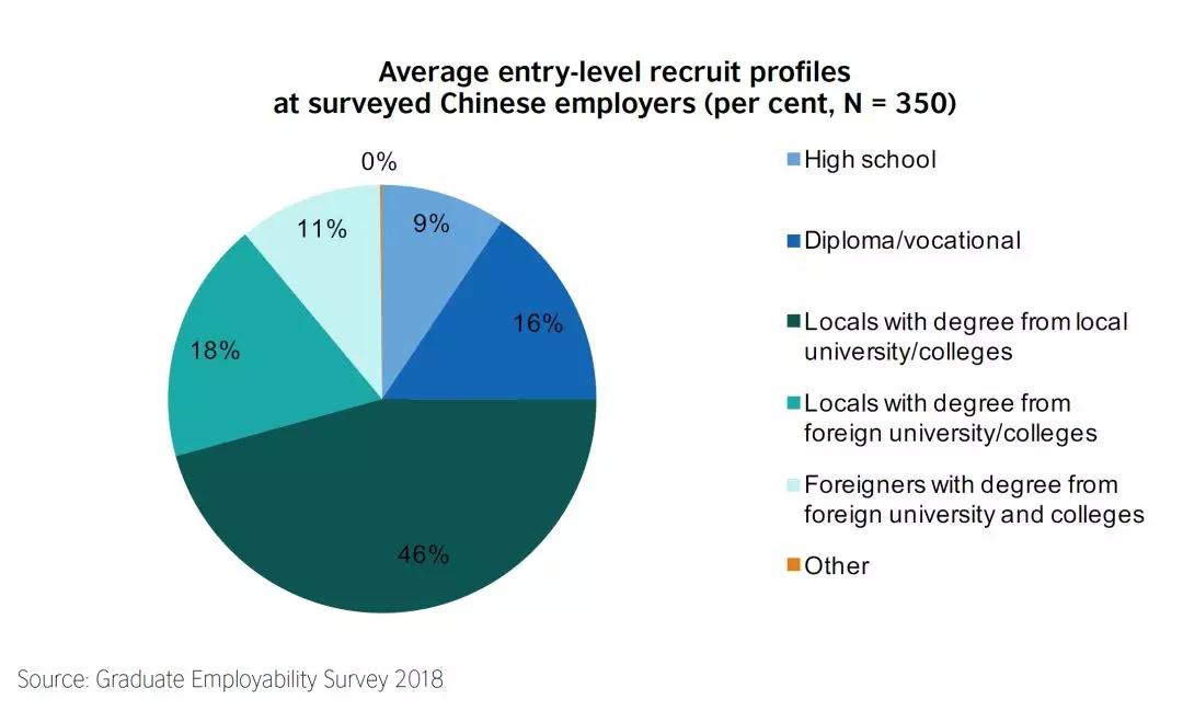 在报告中,雇主们明显表现出了对于高质量求职者的需求,他们中大部分人都相对更加认可有海外学习背景的求职者,特别是那些有着硕士与博士学位的求职者,但同时,研究生经历往往不是硬性要求。海外回归的求职者们通常被认为拥有更强的硬技能与软实力,而那些有海外工作经历的留学生们,对雇主们有着额外的吸引力。