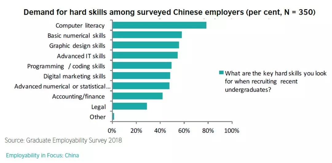其中,硬技能往往指工作专业相关的硬性技术能力,如计算机与IT技能、运算推演能力以及图像设计能力。软实力主要是指团队合作、沟通能力与演讲技巧。