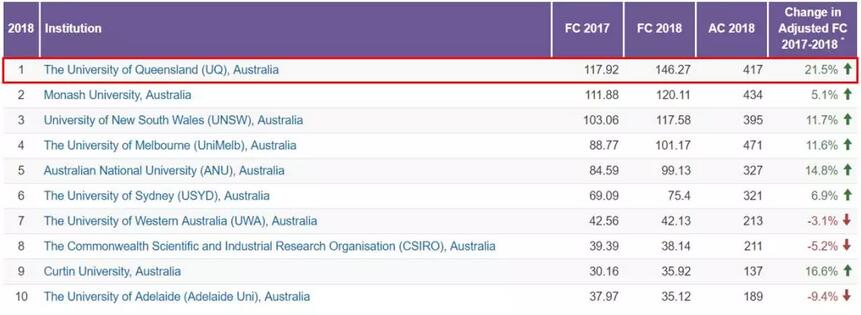 在最新2020QS世界大学排名中,昆士兰大学升至全球第47位,在NTU世界大学科研论文绩效排名中,UQ跃升至有史以来的最好成绩,排名第40位。