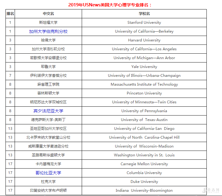 近些年,由于社会压力和生活节奏加快,无论在生活还是工作上,有些人会有自己的心事和压力,心理咨询师成为了当下最炙手可热的职业之一,美国作为全球教育最发达的国家,心理学专业与国内有很大的区别,主要侧重于实验操作过程,因此,美国心理学专业是一个不错的选择,接下来,小编就为大家带来了2019年USNews美国大学心理学专业排名