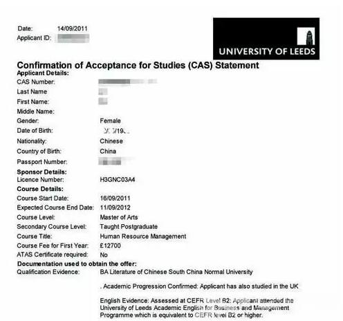 CAS 是 Confirmation of Acceptance for Stuies 的缩写,即电子录取函,由英国校方签发的特殊的参考号,一个 CAS 号码只对应一门课程。自 2010 年 2 月 22 日起, CAS 参考号正式取代纸质 visa letter 进行学生签证申请。 CAS 有效期为 6 个月。