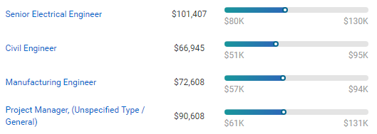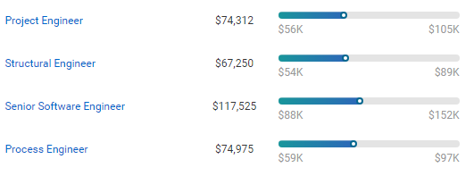 这些工程类相关职业,年薪中位数都在10万美金左右。作为对比, 2017年全美家庭年收入中位数为 6.1372万美元。