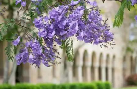 昆大独有的蓝花楹风景也是一绝,每年到了蓝花楹盛开的季节,校园角落都被染成浪漫的紫色。不少毕业学生会选择昆大作为婚纱拍摄地,随手一拍都是大片。不过在考试季节学生可得注意别被蓝花楹砸到头了,因为校园里流传有一个传闻:如果蓝花楹花瓣飘落在学生头顶,学生也许会挂科。所以你或许会看到考试季,同学在经过花树下便会用书本和包遮住头。