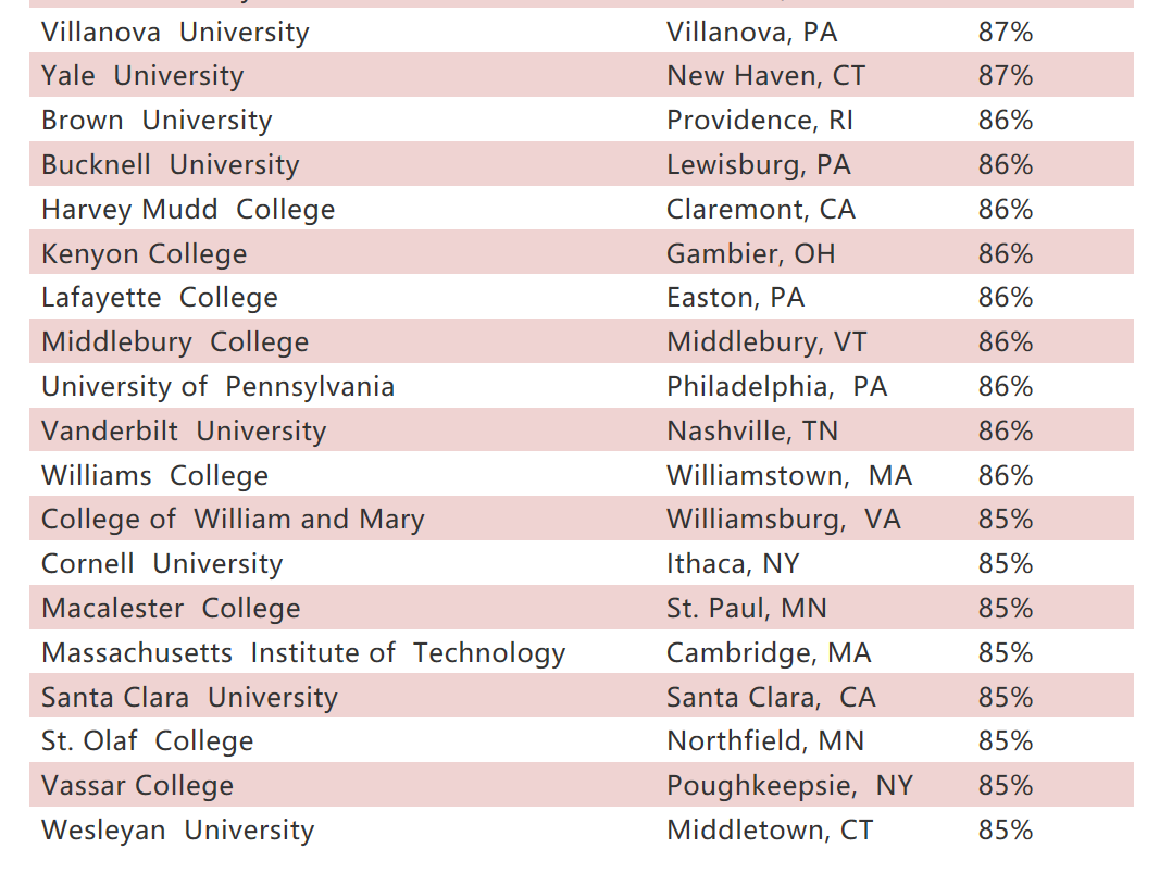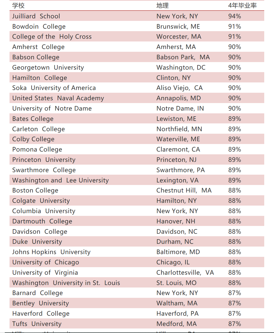 USNews对于美国大学的4年毕业率进行了排名。老师 为大家整理了毕业率高于85%的学校 ~
