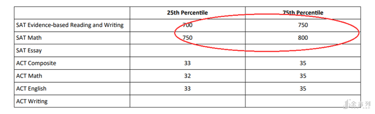 例如申请卡梅,成功入学2018年卡梅的学生在SAT的Evience-base reaing an writing基于证据的阅读和写作部分(25%-75%)是700-750,数学是750-800。