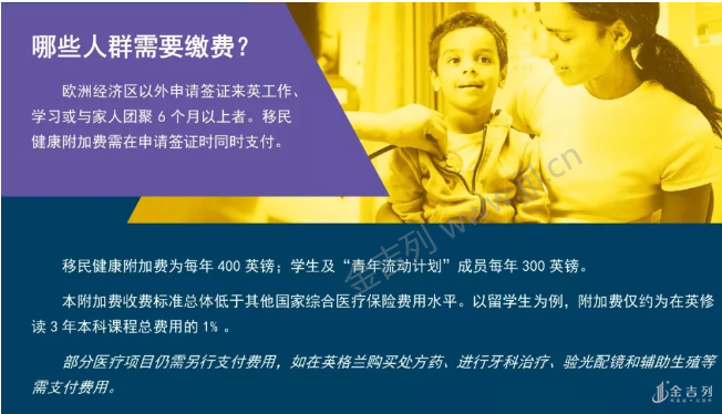 IHS医疗附加费适用于来自欧洲经济区以外国家和地区、前往英国工作和学习超过6个月的学生、工作人员和家庭团聚者。也包括已在英国但需要延长在英时长的非欧洲经济区公民。