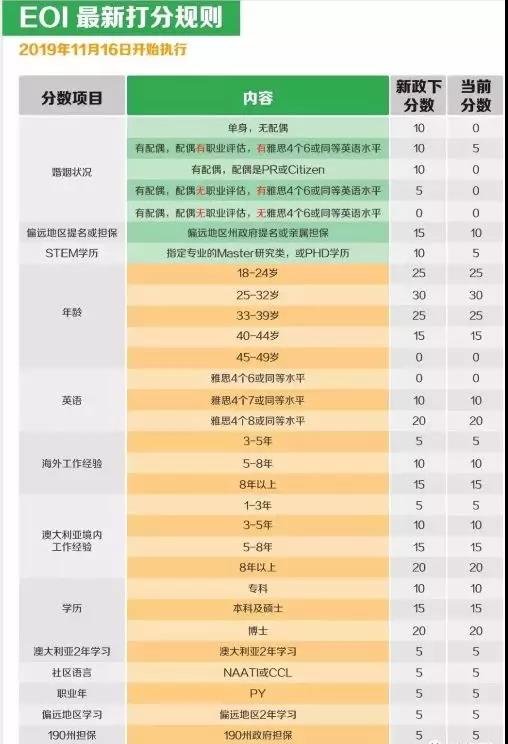 EOI打分裸分50分(新政实施后州政府担保加分变更为15分)